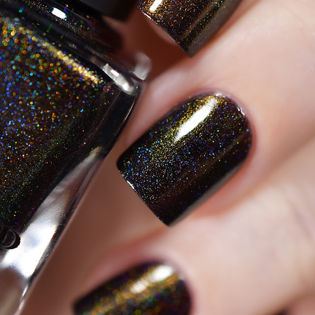 ILNP Shadow Grove - черный лак с золотисто-зеленым и голографическим шиммером. Я использовала его в три слоя и добавила топ