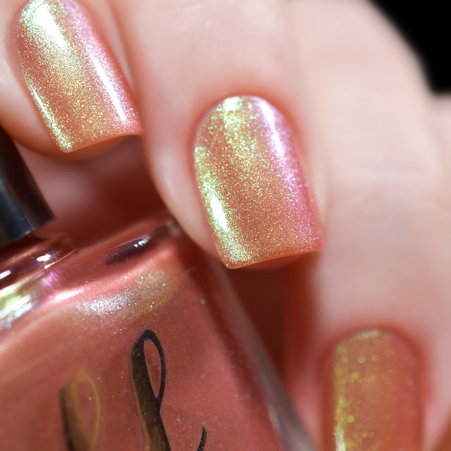 Femme Fatale Lambent - кораллово-оранжевый лак с розово-красно-золотистым шиммером. Я использовала лак в три слоя и добавила топ