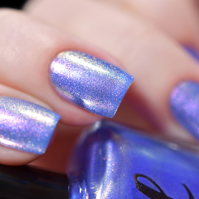 Femme Fatale Glisten - голубой лак с розово-золотисто-зеленым шиммером. Я использовала лак в три слоя и добавила топ