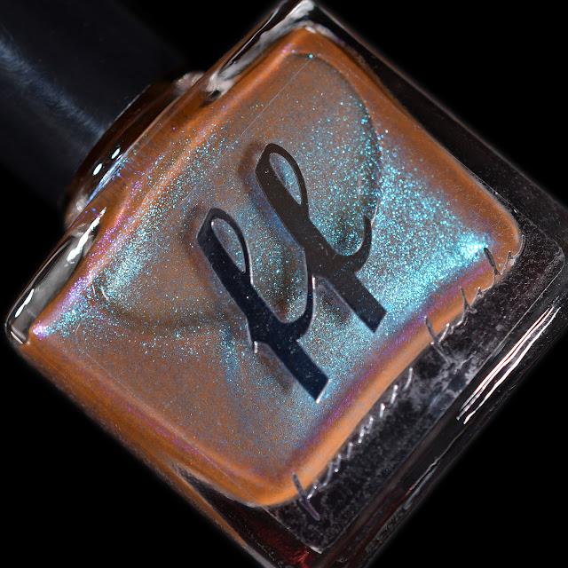 Femme Fatale Goblin Night - коричневый лак с мультихромным бирюзово-розово-фиолетовым шиммером. Я использовала лак в три слоя и добавила топ